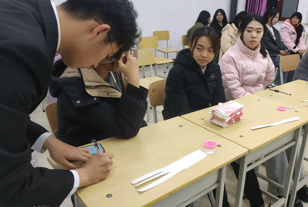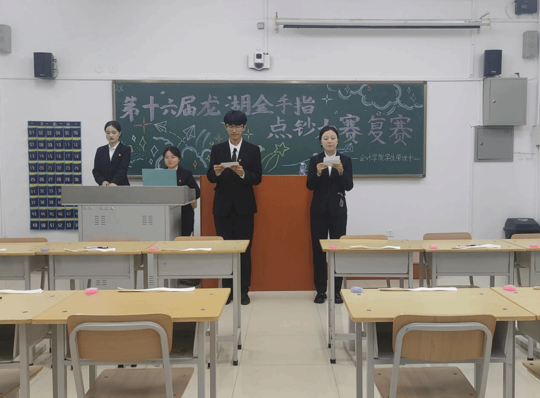 跃动指尖,妙手点钞。为丰富学生的大学生活,提高学生专业实践能力,展现学生的“钞”能力,在经过初赛的激烈角逐后16组选手成功晋级复赛。会计学院龙湖金手指点钞大赛复赛于2024年11月11日18:00在博学楼A区322如期而至。经过近一周的技艺打磨与沉淀,选手们都展现出了自信昂扬、胸有成竹的奋战姿态,严阵以待。