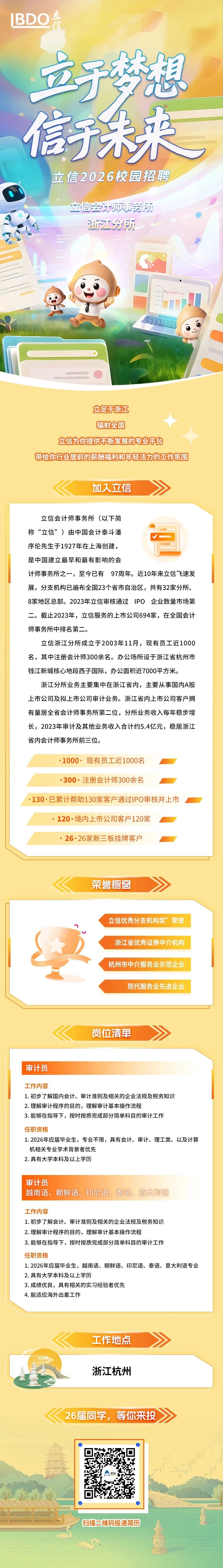 【招聘】立信会计事务所浙江分所2026校园招聘
