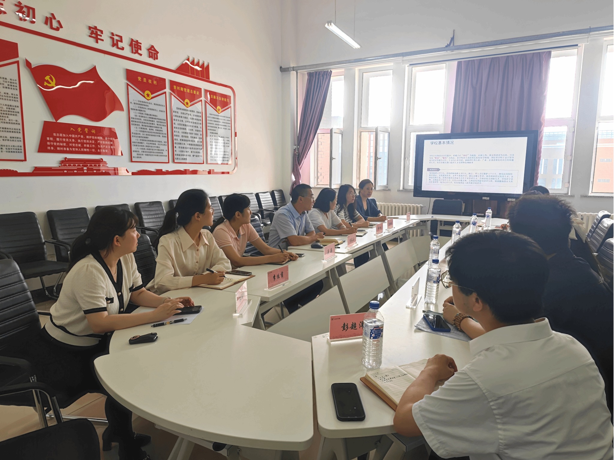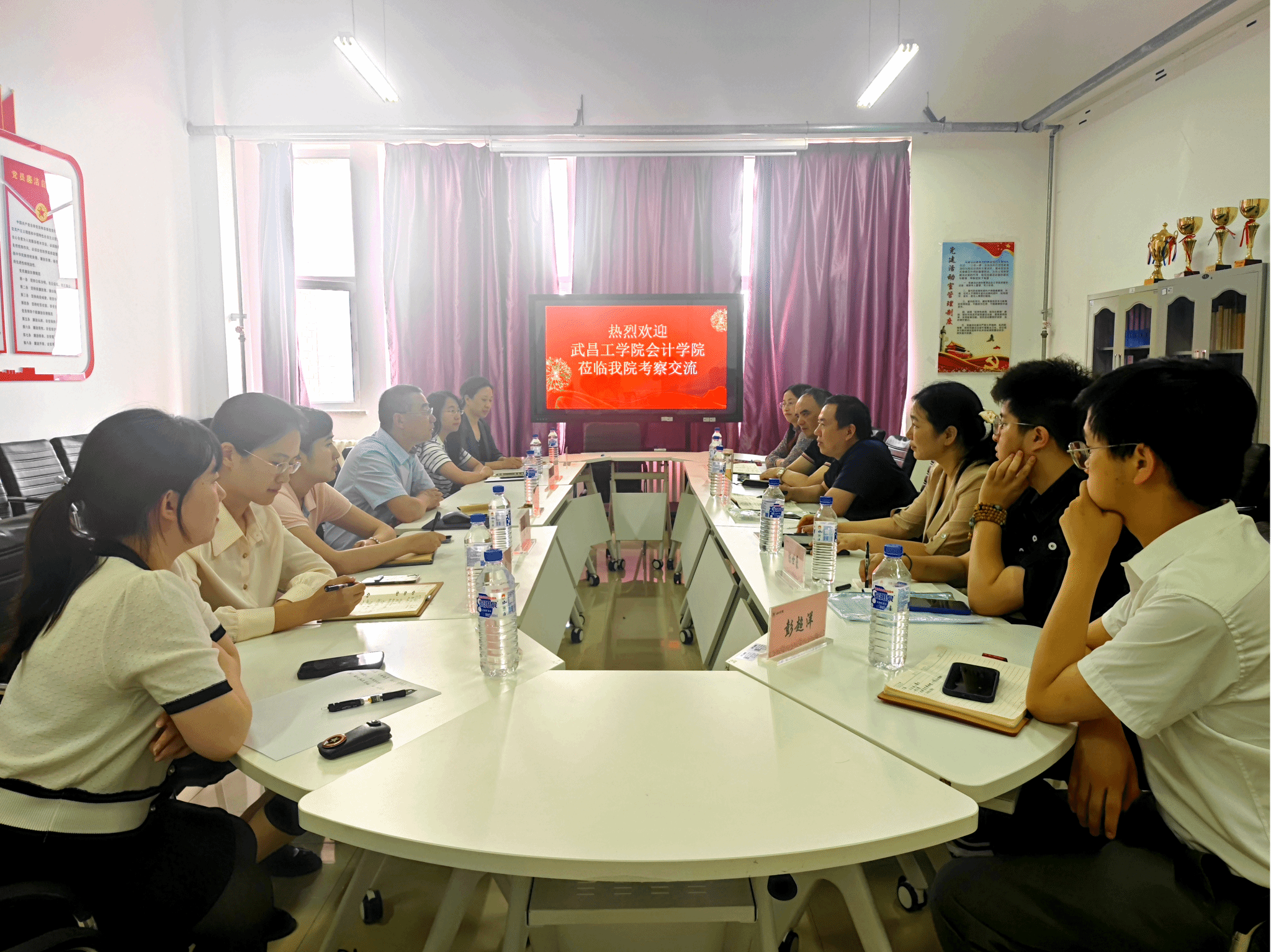 2024年7月8日下午,武昌工学院会计学院院长吴有庆、副院长许世林、会计系主任张守芳、审计系主任朱美玲、会计系骨干教师陈士豪,以及新道科技湖北省省区校企合作经理彭超洋一行六人来我院考察交流。会计学院院长李长山、副院长郭华敏、会计学教研室主任聂晶、审计学教研室主任王冰羽、会计学教研室专任教师李佳茵、新道科技吉林省区校企合作经理朱瑞琳和教学服务总监李微笑参加会议,会议由李长山院长主持。