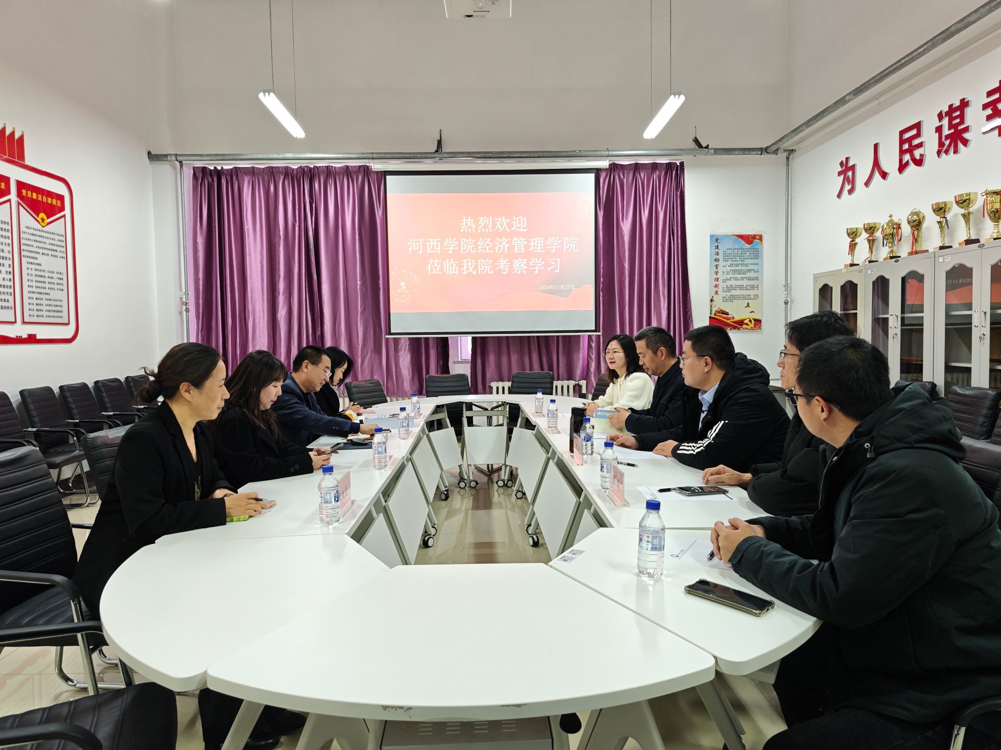 2024年11月27日下午,河西学院经济管理学院党委书记王全位、副院长周秀兰、副院长祁宁以及学工办主任徐芮,一行四人来我院考察交流学习。会计学院院长李长山、副院长郭华敏、会计学教研室主任聂晶、新道科技吉林省区校企合作经理朱瑞琳和教学服务总监李微笑参加会议,会议由会计学院院长李长山主持。